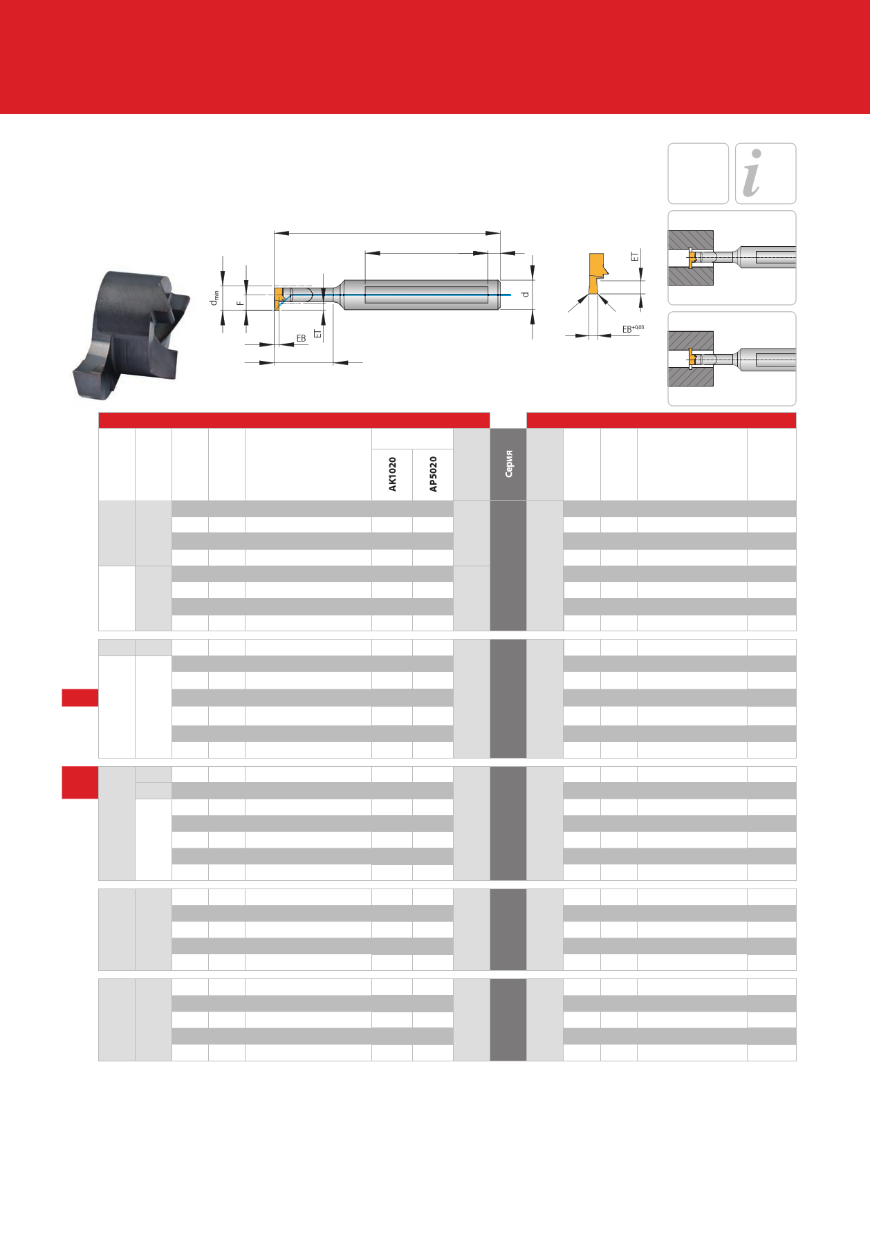 *) = Стальное исполнение EB = Ширина канавки (мм) ET = Глубина канавки (мм) R = Радиус