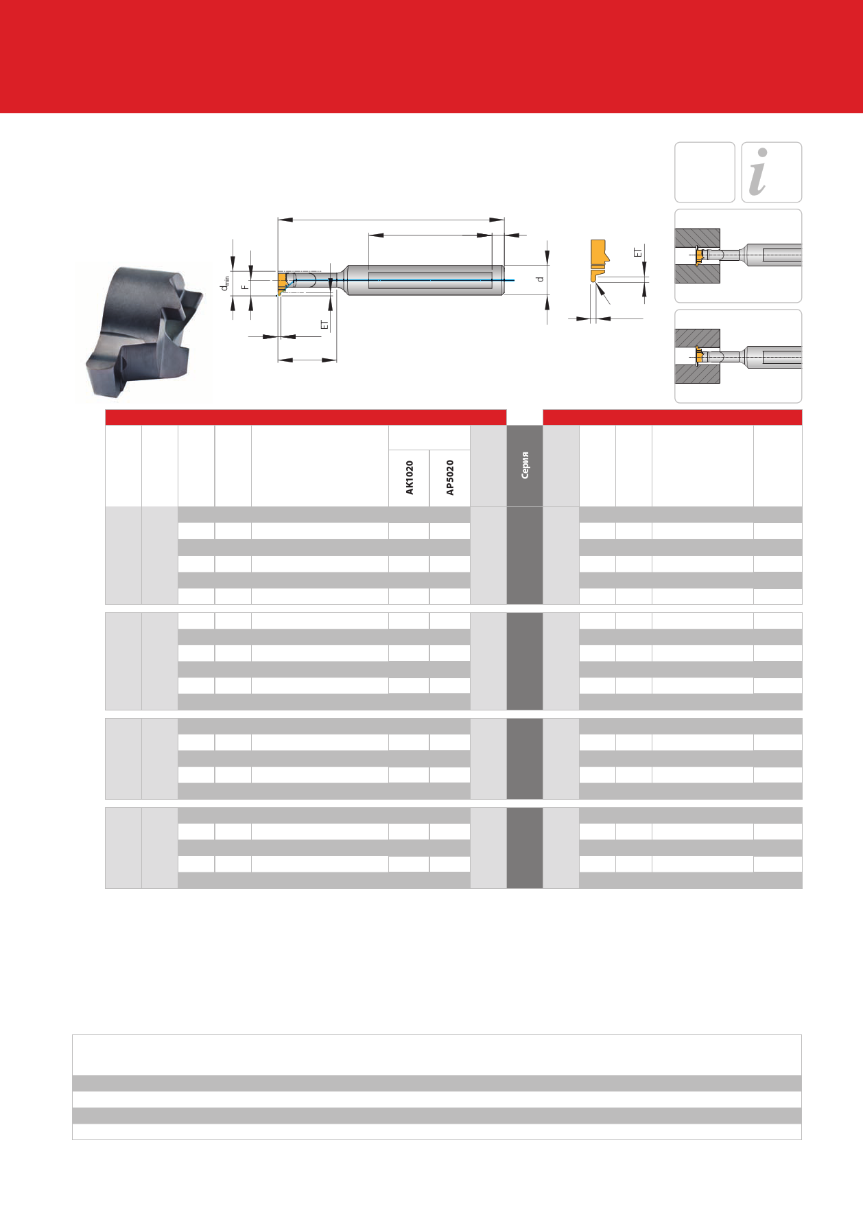 *) = Стальное исполнение EB = Ширина канавки (мм) ET = Глубина канавки (мм) R = Радиус