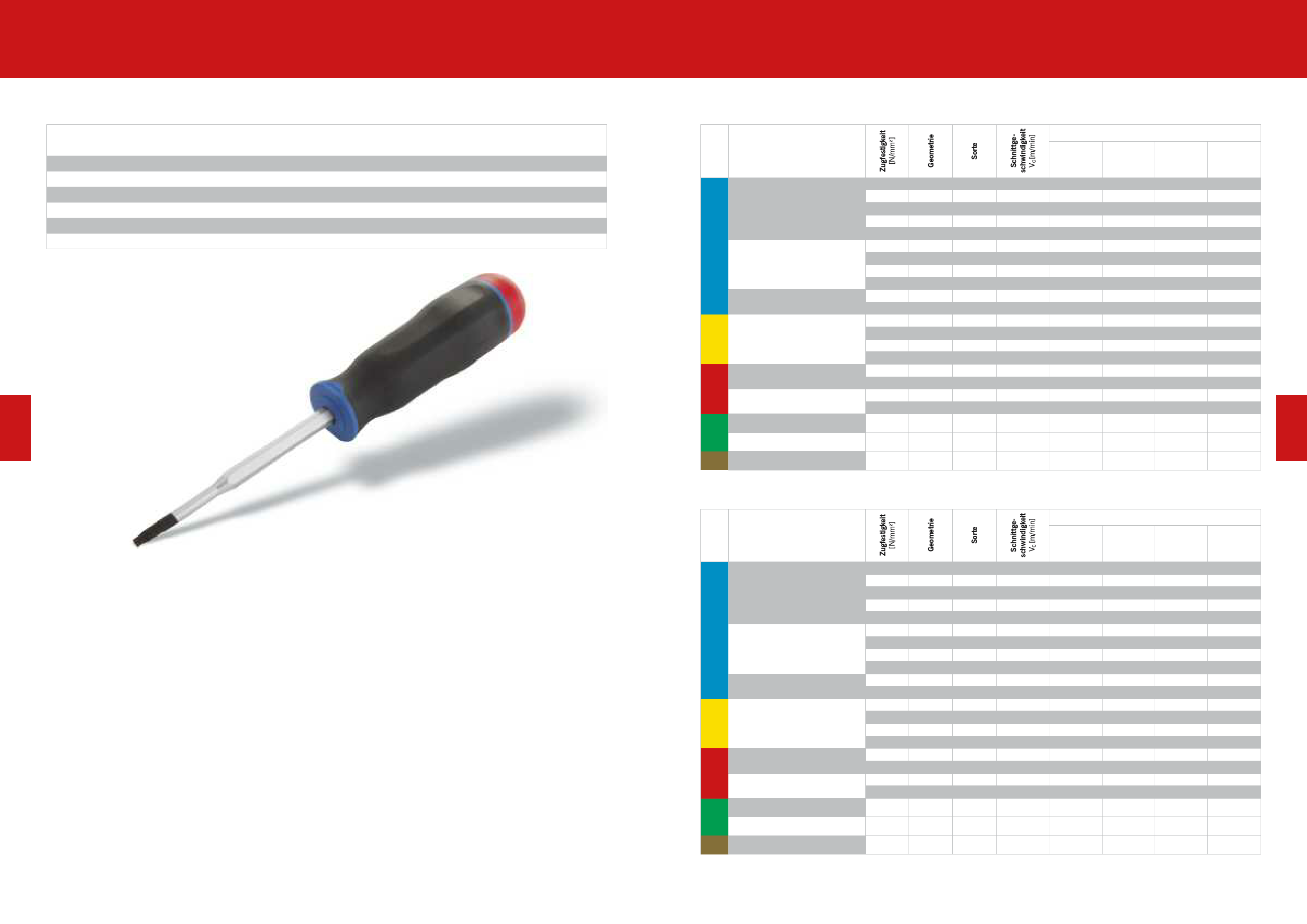 Bei neuen Anwendungen mit durchschnittlichen Rahmenbedingungen (z.B. Aufspannung, Khlmitteldruck und Maschinenstabilitt) kann als Startwert die Mitte des