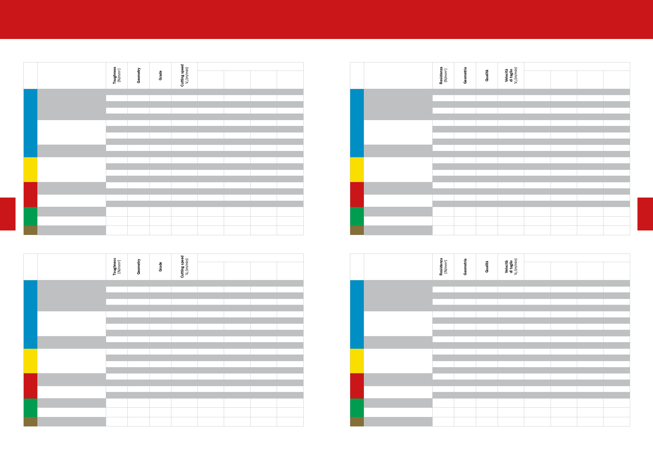 I parametri di taglio sono indicativi e riferiti a condizioni di taglio e di lavoro ottimali. A seconda delle condizioni di lavoro (staffaggio, rigidit di macchina e pezzo, qualit
