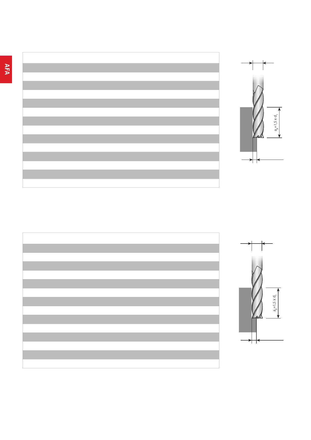 Feed rate correction factor Kf f = 1,10 with a = 1 x d and Kf f = 1,25 with a = 0,5 x d