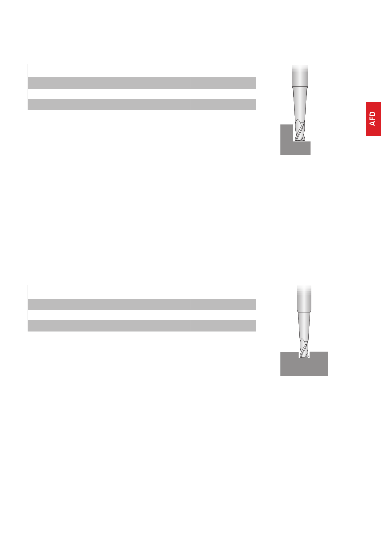 Recommended cutting data feed tables