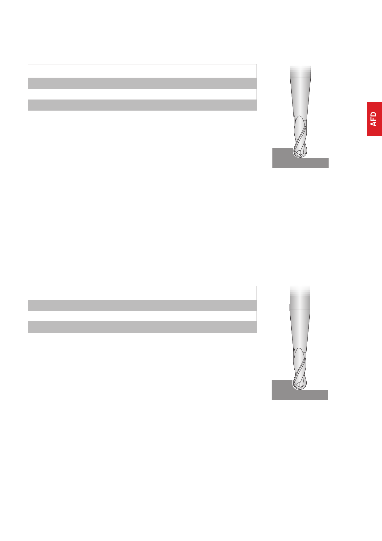 Recommended cutting data feed tables