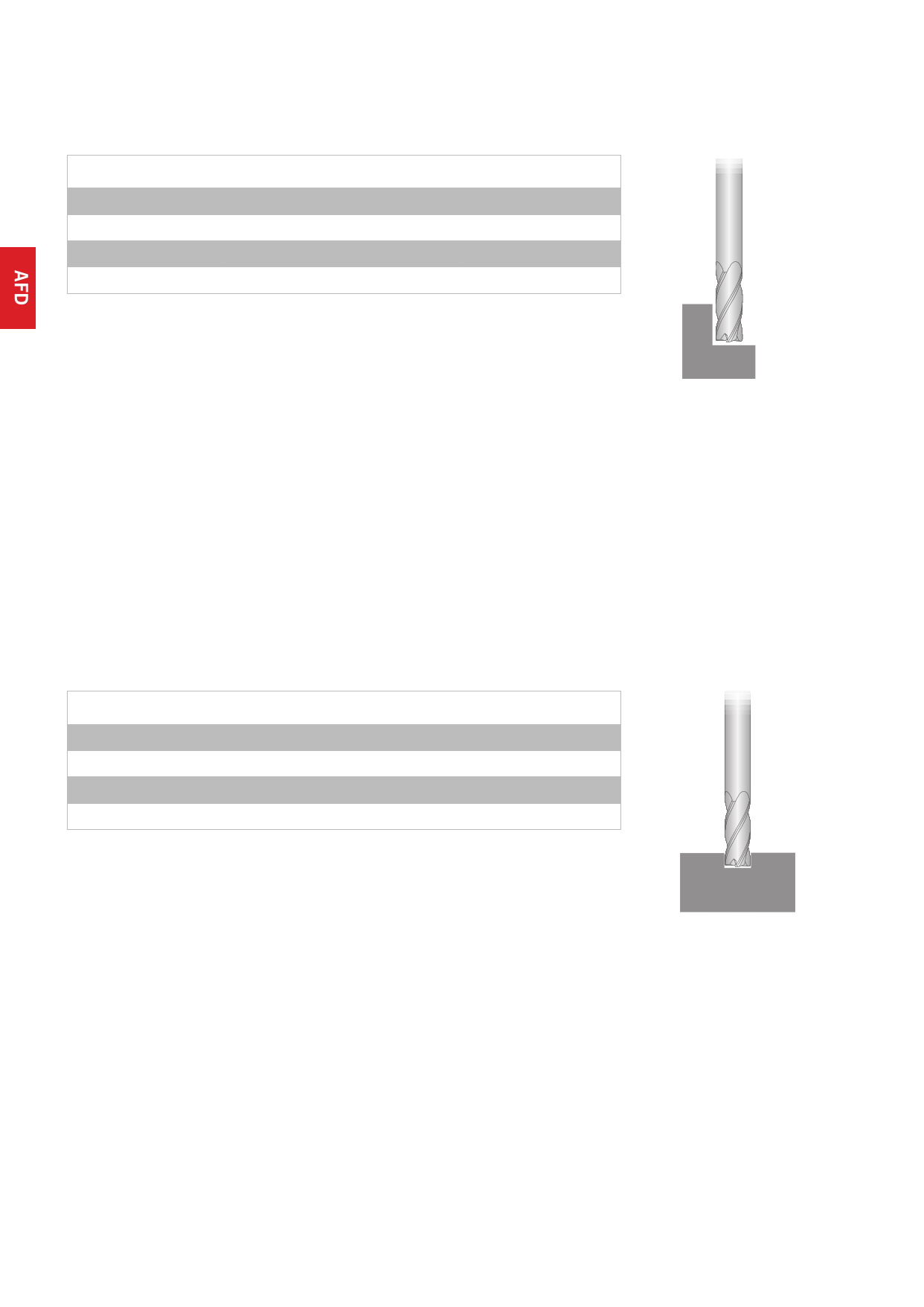 Recommended cutting data feed tables