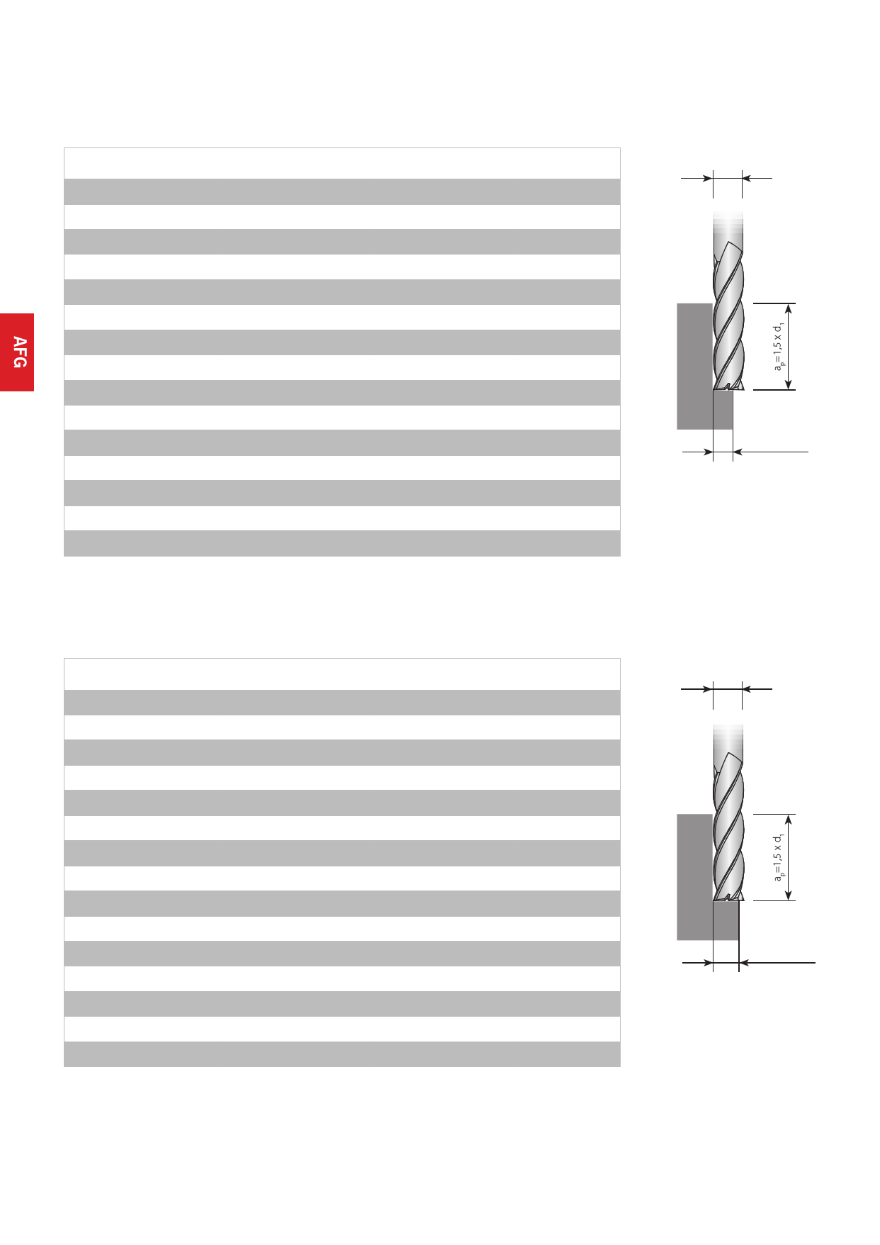 Feed rate correction factor Kf f = 1,10 with a = 1 x d and Kf f = 1,25 with a = 0,5 x d