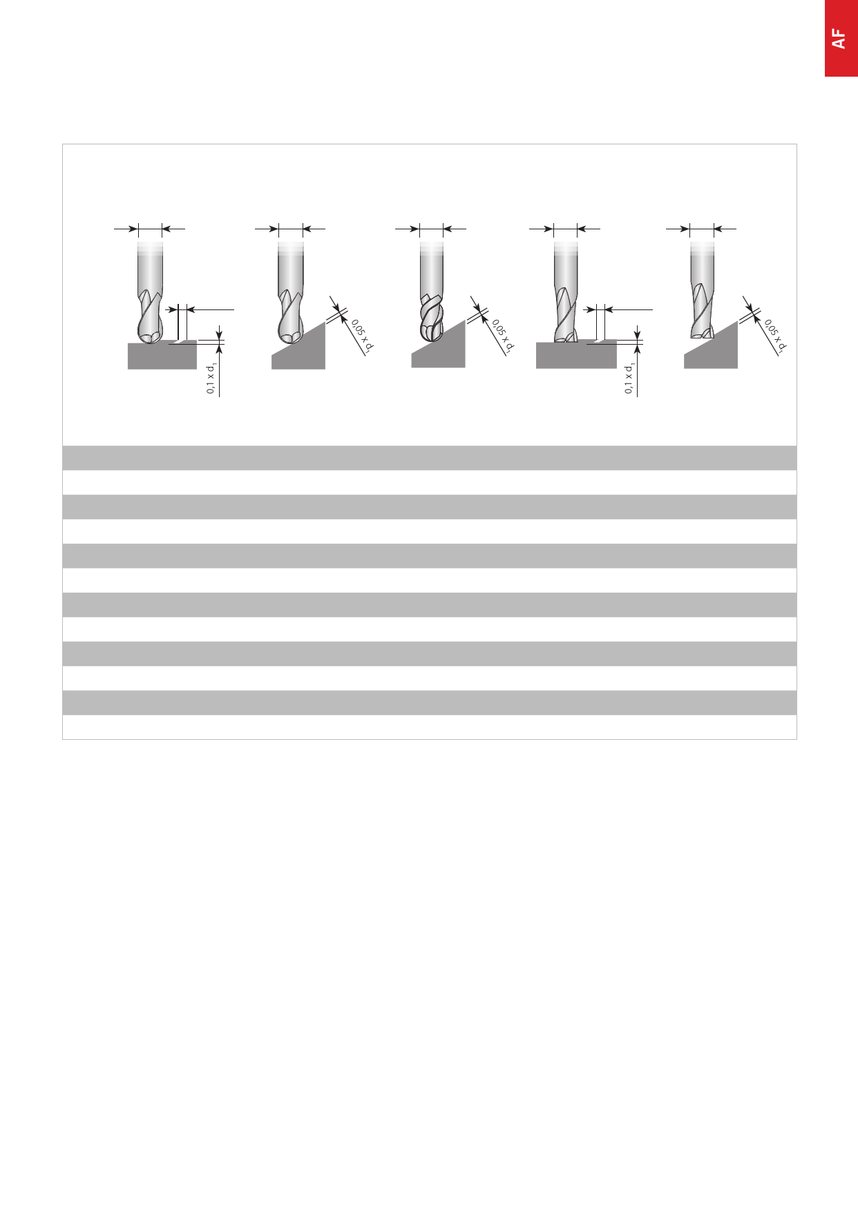 Recommended cutting data feed tables